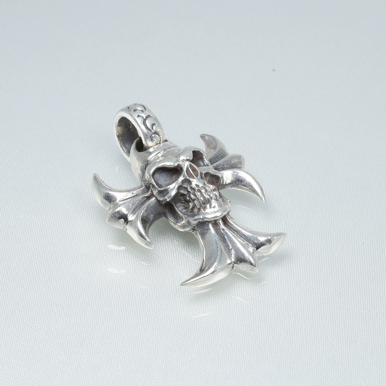 【刻印】シルバー925 スカルクロスデザイン ネックレストップ