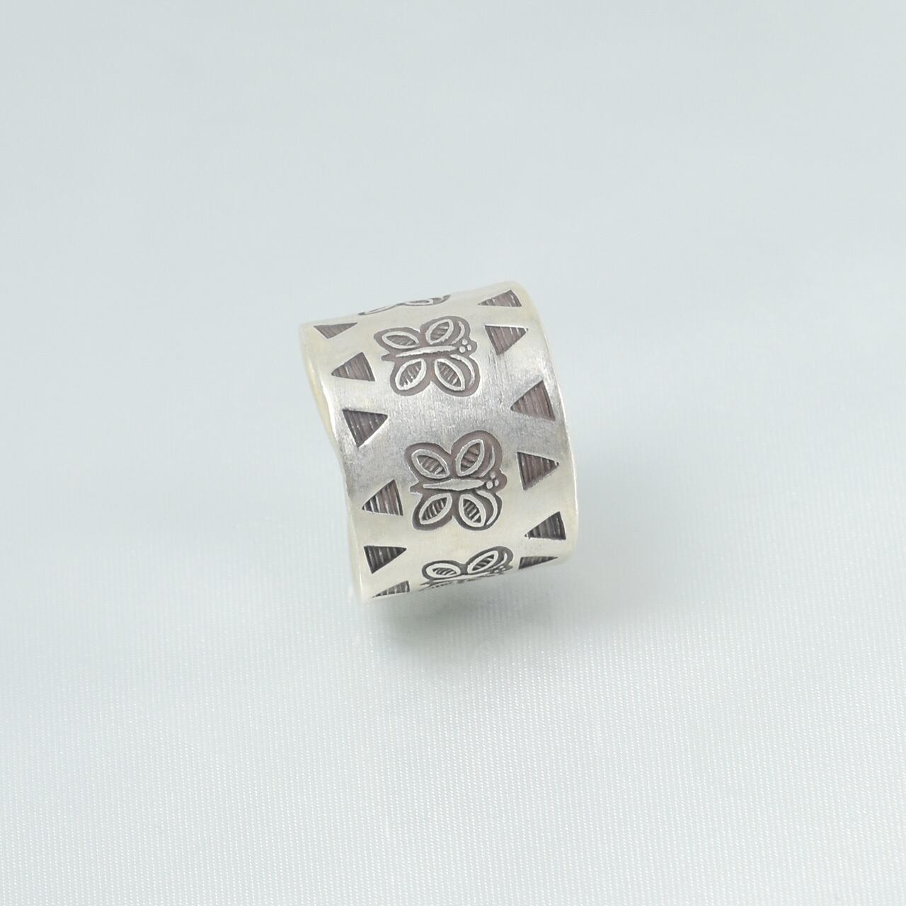 【カレンシルバー98%】打刻 お花リングは、華やかな花のモチーフが映えるエレガントなデザインが魅力の特別なアイテムです。98%の純度を誇るカレンシルバーを使用し、身につけた瞬間に指元に美しい花の輝きを添えます。このリングは、日常のカジュアルスタイルはもちろん、特別な場面やギフトにもふさわしい逸品です。熟練の職人によって丁寧に仕立てられた特別な作品としてお届けいたします。