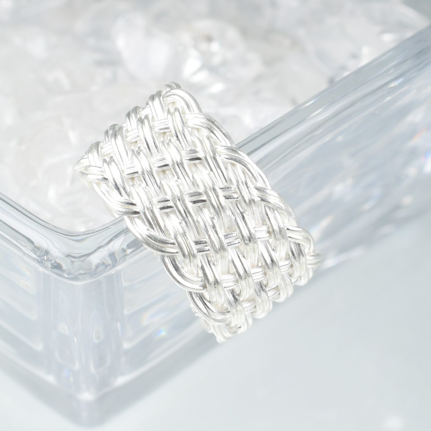 洗練された魅力を放つ【カレンシルバー98%】縄編み 白銀 デザインリング