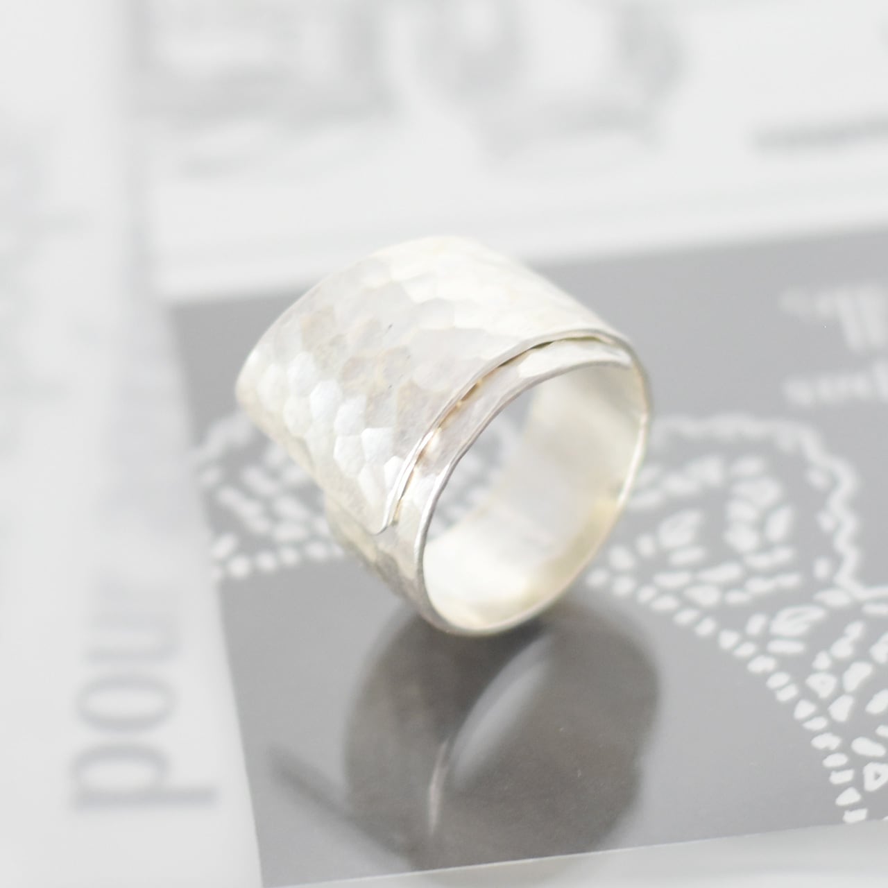 洗練された魅力を放つ【カレンシルバー98%】白銀 平打ち 打刻 リング