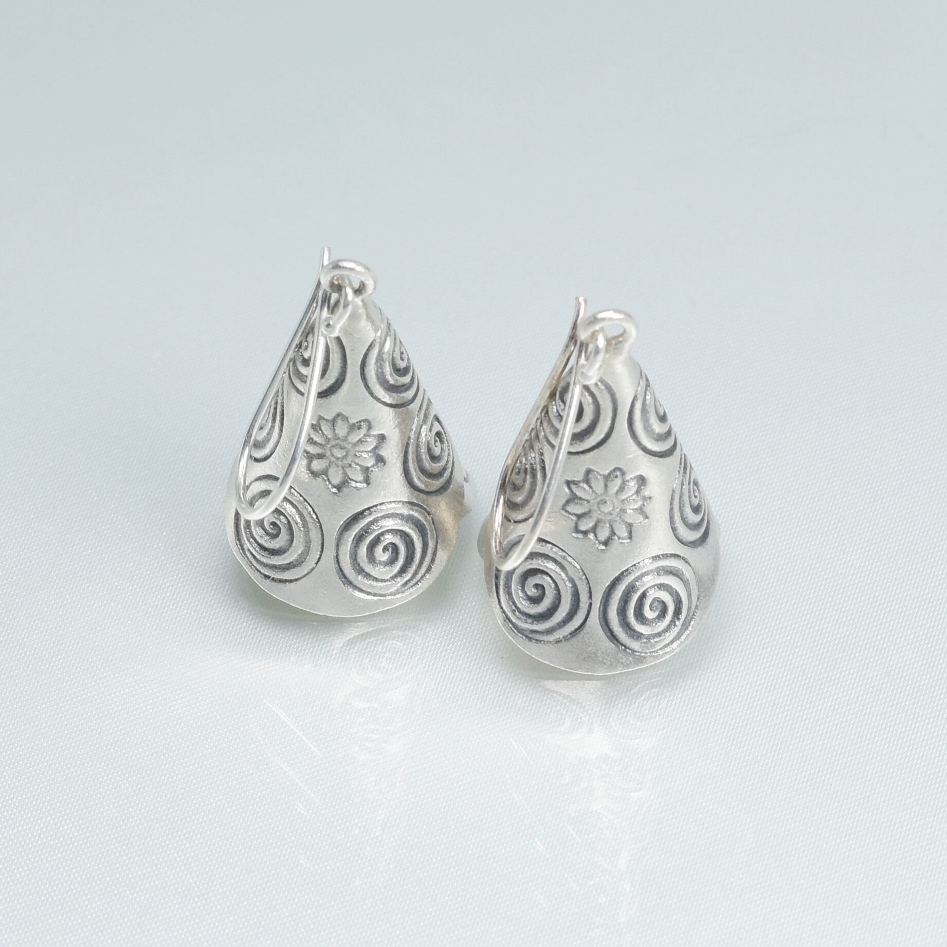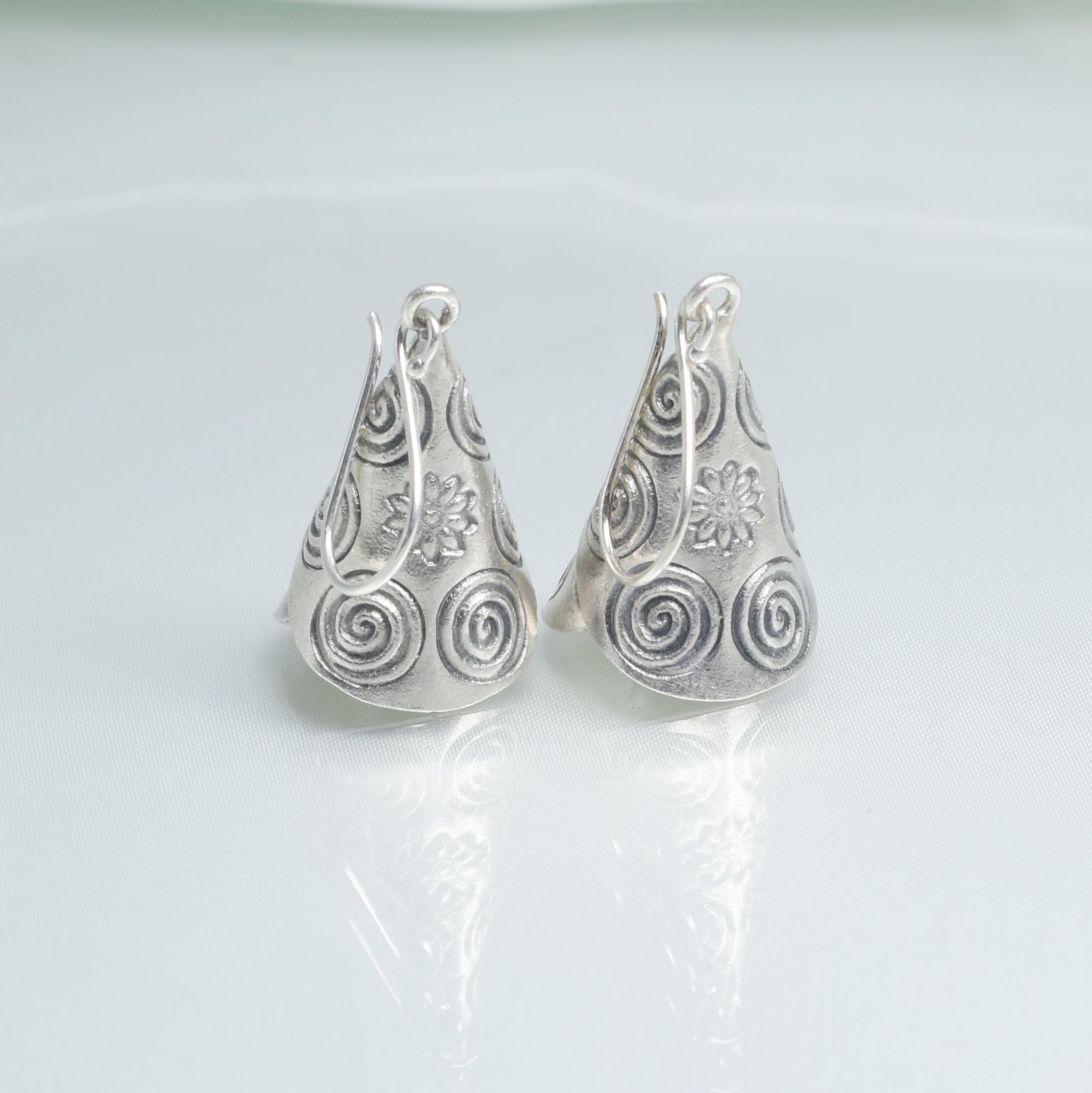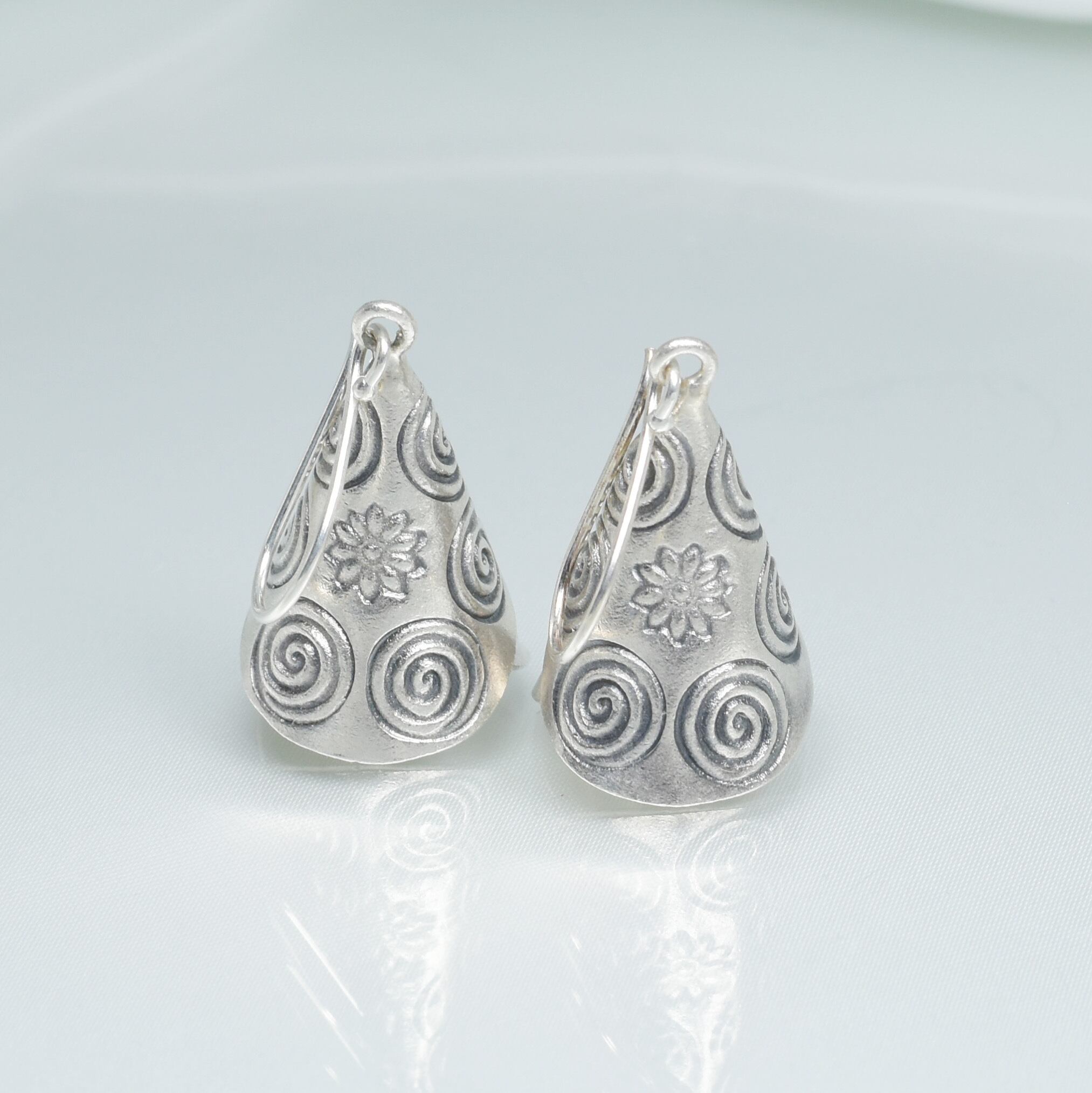 【カレンシルバー98%】渦巻き デザイン ピアスは、純度98%のカレンシルバーを使用し、独特な渦巻きデザインが特徴の特別なアイテムです。このピアスを耳に装着することで、個性的なアクセントを加え、さまざまなシーンで自信を持ってお楽しみいただけます。カジュアルな装いから特別なイベントまで、心豊かなスタイルを演出する魅力的な逸品です。熟練の職人によるハンドメイドで、ディテールにまでこだわりが込められた特別な作品としてお届けいたします。
