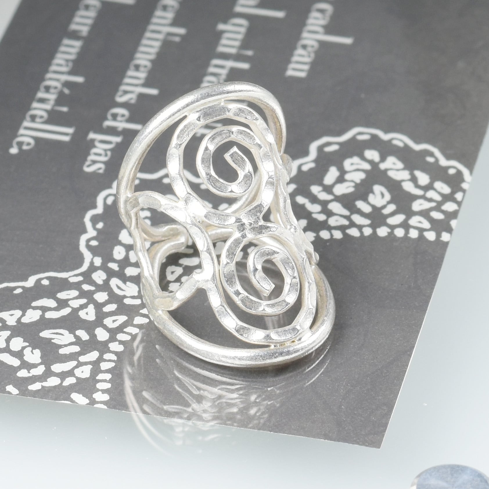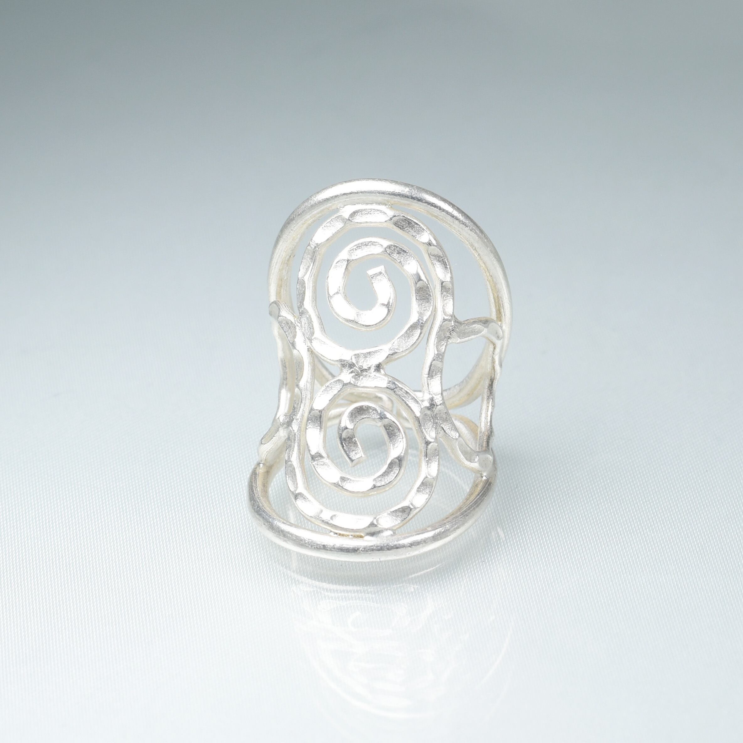 洗練された魅力を放つ【カレンシルバー98%】白銀 渦巻きモチーフ デザインリング