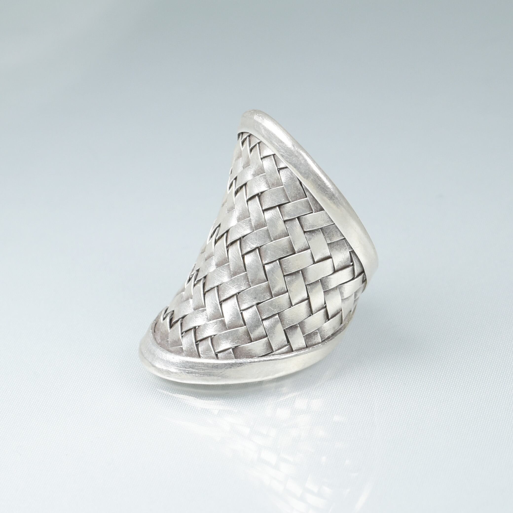 洗練された魅力を放つ【カレンシルバー98%】縄編み 大判 リング