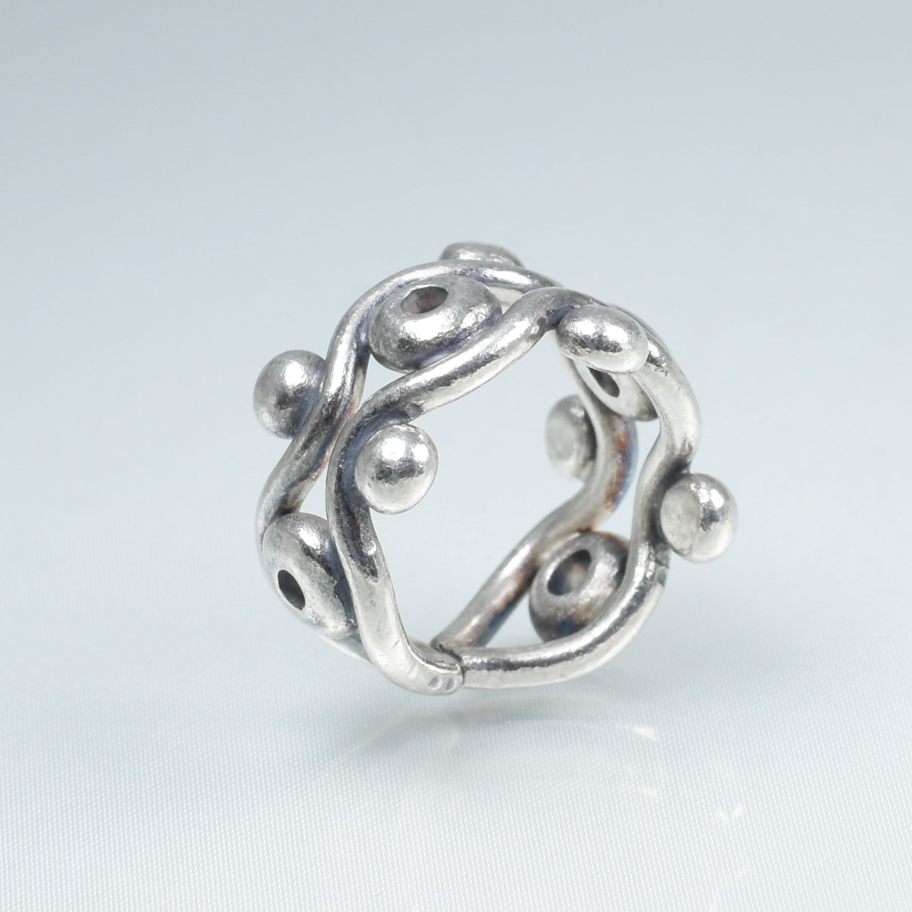 使用されているのは、純度98%のカレンシルバーです。高品質な素材と職人の卓越した技術によって生み出されたこのリングは、独特の美しさと優れた耐久性を兼ね備えています。